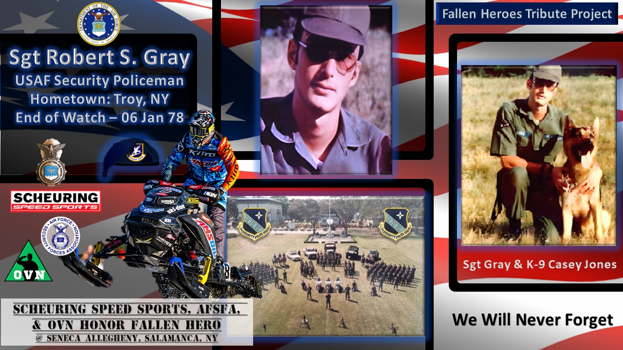 OVN contacted AFSFA as the association for USAF Defenders and expressed an interest to honor eight Security Forces members KIA during the Scheuring Speed Sports Snocross Team season from Dec 2023 - Apr 2024. In the series Pro Racers will carry the name of a fallen SF member on their snowmobiles, and we share the names and stories with our community and race attendees.