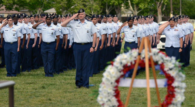 Col. Richard DeMouy, commander of the 377th, told those gathered at Hardin Field that all of the 44, regardless of what uniform they wore, were part of the thin blue line that separates good from evil and order from chaos.