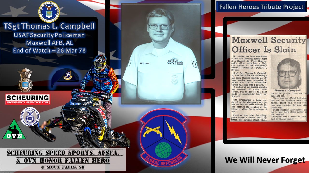 OVN contacted AFSFA as the association for USAF Defenders and expressed an interest to honor eight Security Forces members KIA during the Scheuring Speed Sports Snocross Team season from Dec 2023 - Apr 2024. In the series Pro Racers will carry the name of a fallen SF member on their snowmobiles, and we share the names and stories with our community and race attendees.