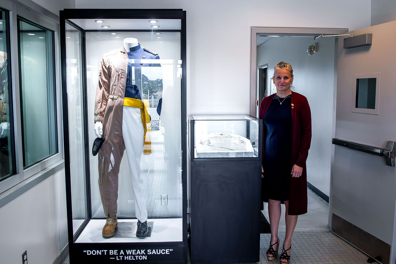 Academy and 10th Air Base Wing leaders joined Helton’s family, friends and fellow security forces defenders at the dedication ceremony. A large display case containing Helton’s cadet parade uniform and flight suit, which his family provided, is now showcased inside the facility. Helton’s service details are inscribed on a stone made from Terrazzo marble with his motto: “Don’t be a weak sauce.” Helton graduated from the Academy in 2007.