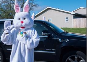 The Easter Bunny went door-to-door to visit with Travis families and delivered 163 candy bags.