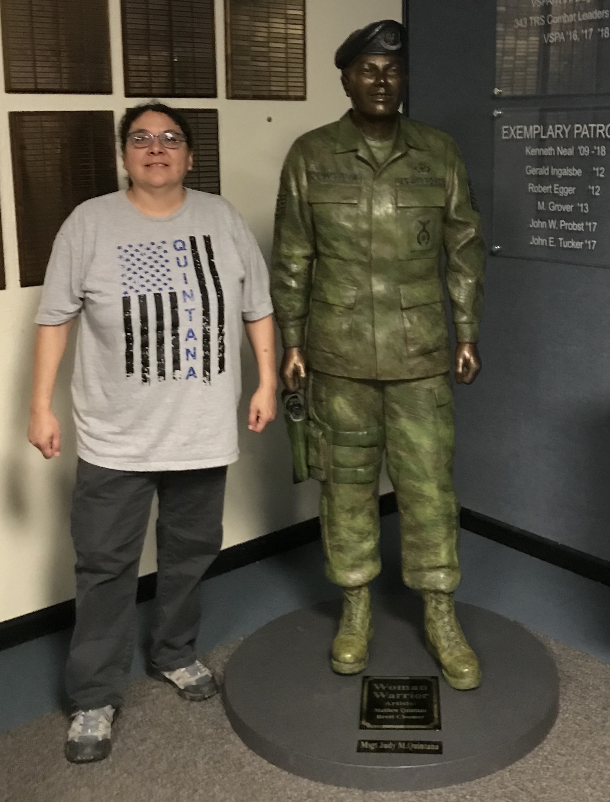 MSgt (ret) Judy Quintana escorted the Security Forces statue that pays tribute to female veterans to the Security Forces Museum on Joint Base San Antonio-Lackland on 2 January 2019 where it will remain non display until 24 April. who advised that she dropped off her "Woman Warrior" sculpture today at the SF Museum where it will stay until 24 April. After which the sculpture will next move to the AF Armament Museum at Eglin AFB for 3 months.