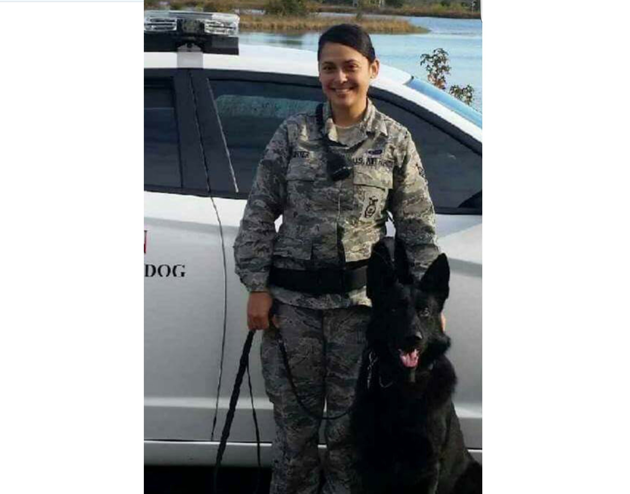 Staff Sgt. Monica Rodriguez poses with her military working dog, John.