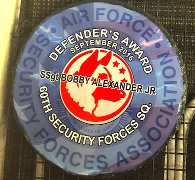 60th Security Forces Squadron with the support AFSFA Travis Bay Area Chapter has begun presenting a monthly Defender Award. AFSFA-TBAC members agreed to fund the project and 60SFS leadership established the award criteria. The Award is open to both military and civilian members of 60SFS.