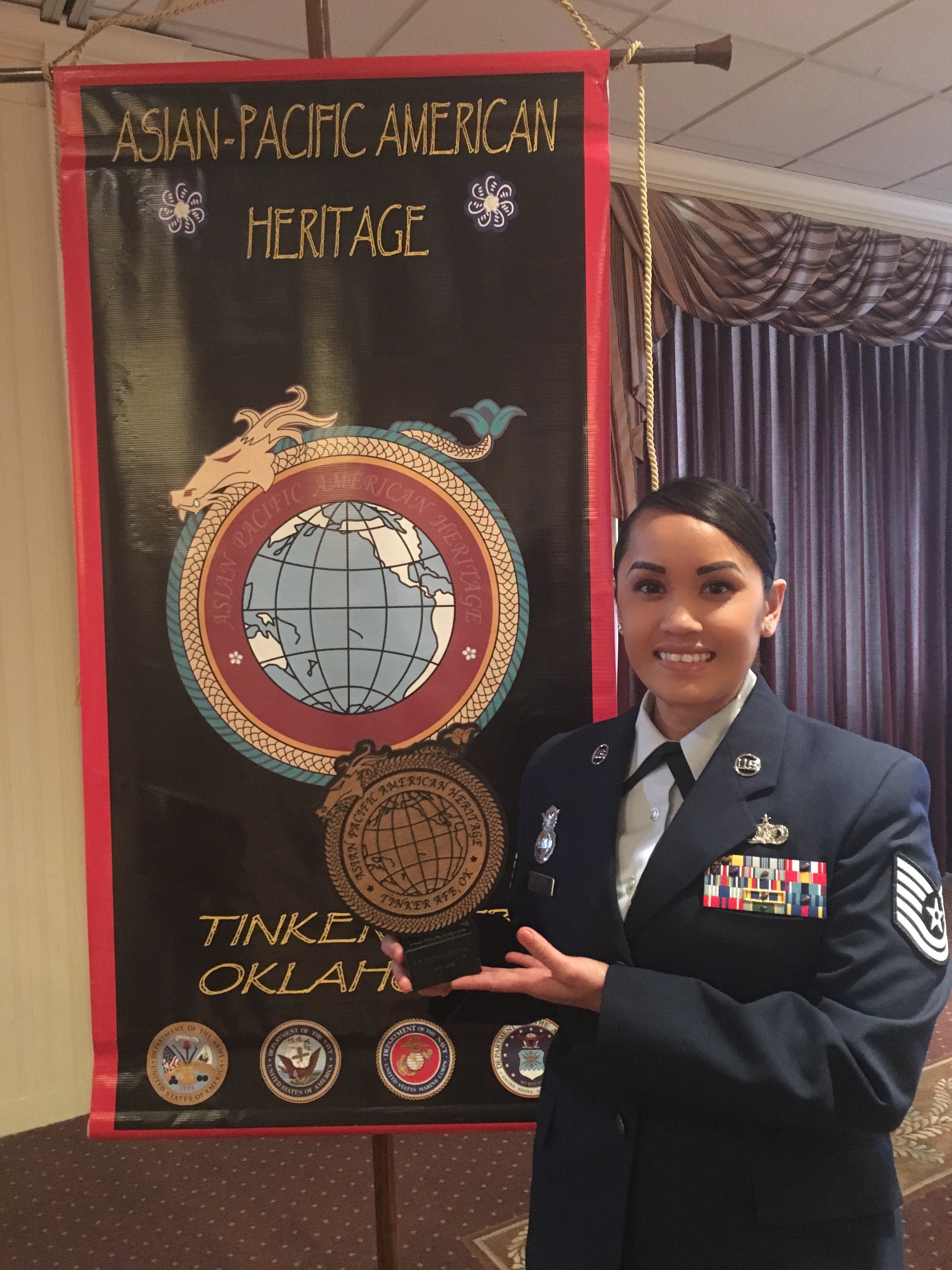 Each year, the Tinker Air Force Base Asian Pacific-American Heritage (APAH) Committee honors individuals of any ethnicity backgrounds who directly or indirectly promoted the Air Force values and have made significant contributions to the Air Force, Tinker AFB, and/or the APAH community.