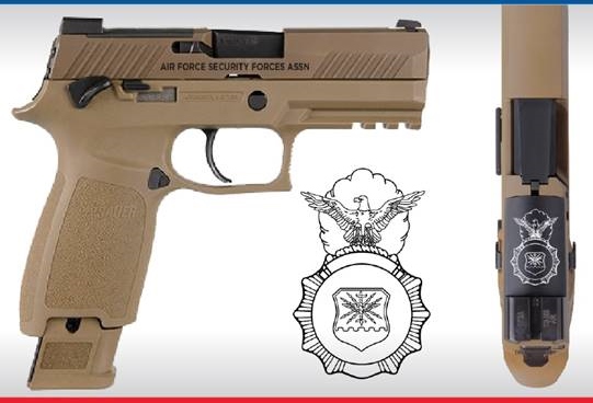 Between 1 June and 31 July 2023 any current AFSFA member may call in and place their name on a list for one of the military’s newest modular handguns … the Sig Sauer M18. These commemorative pistols will have the Security Forces shield outline engraved on the black plate just in front of the rear sight and bear our name, AIR FORCE SECURTY FORCES ASSOC, on the right side of the slide as pictured. The 9MM pistol is flat dark earth in color and comes with: a manual safety; (2) 17 round steel magazines; the SIGLITE night sights; and, an AFSFA certificate of authenticity numbered to the pistol. Pistols sell for $880.00 each which includes shipping but DOES NOT include transfer fees.