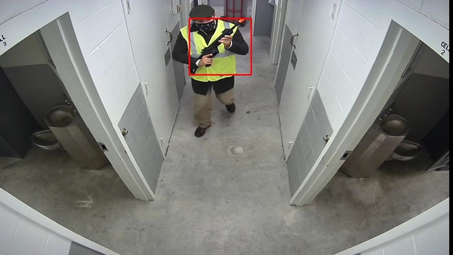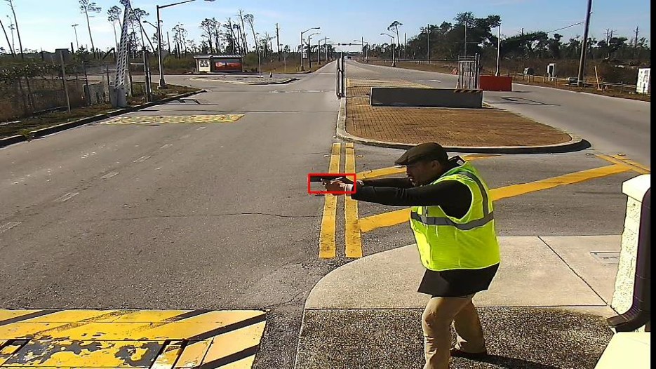 A computer image demonstrates the capabilities of Zero Eyes, a new artificial intelligence software designed to detect and alert the presence of firearms, at Tyndall Air Force Base, Florida, Jan. 28, 2022. Tyndall implemented the software in early 2022 and it currently remains in the testing and evaluating stage. (Courtesy photo)
