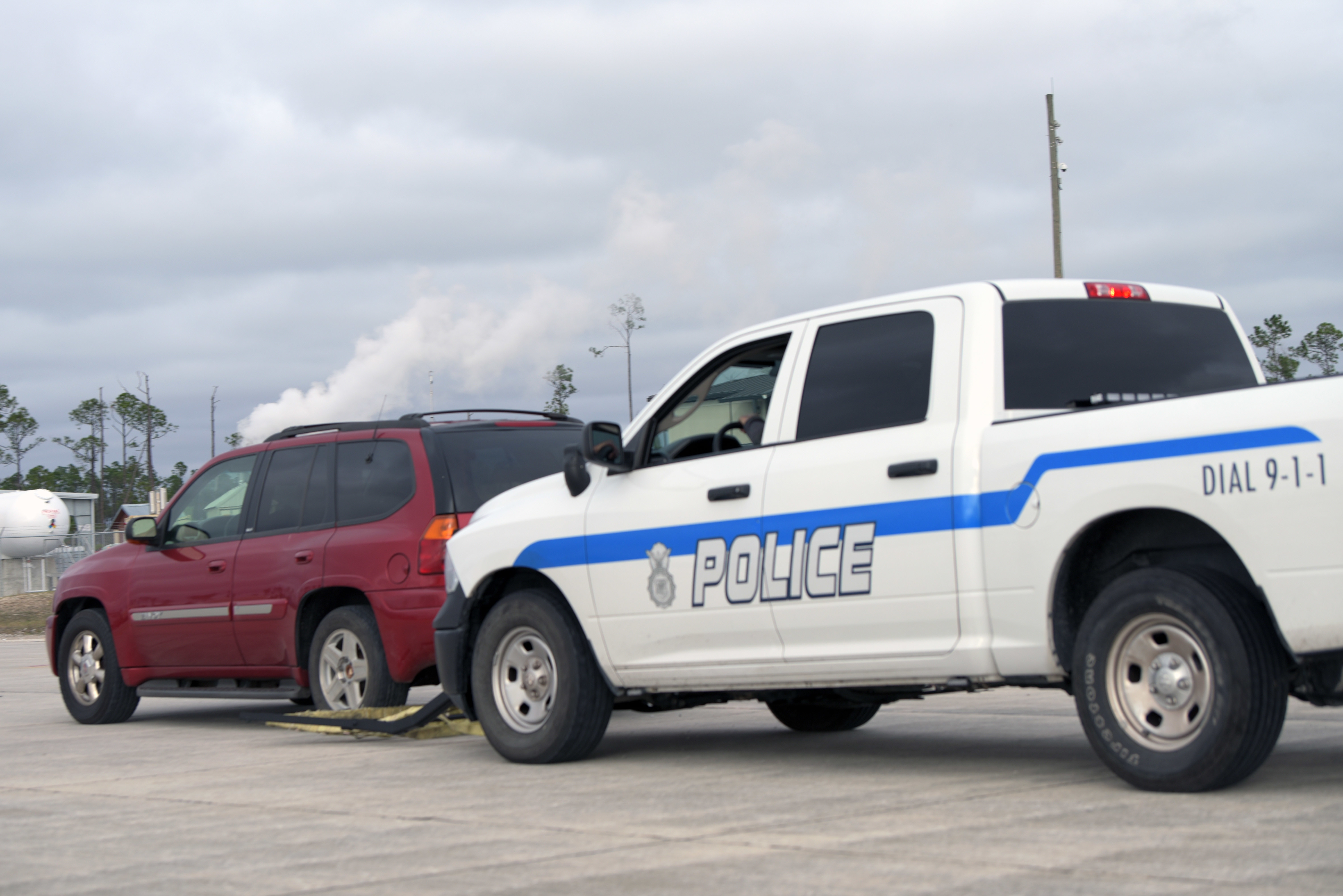The 325th Security Forces Squadron partnered with the Bay County Sheriff’s Office and Stock Enterprises LLC to conduct police pursuit training utilizing a grappler system at Tyndall Air Force Base, Florida, Dec. 21, 2021.