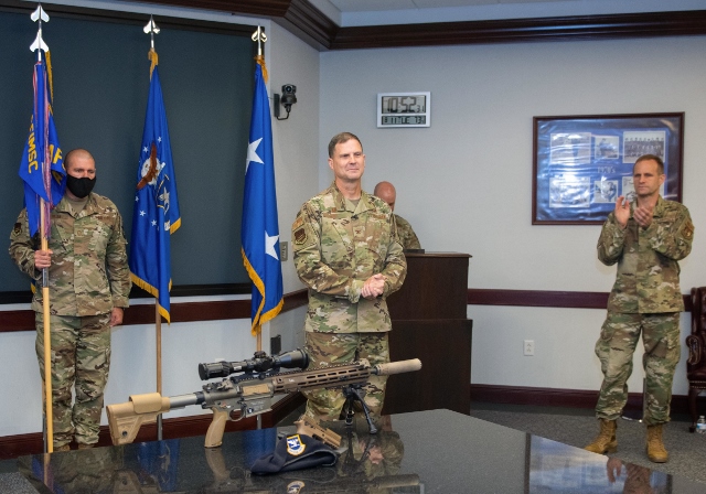 Guill accepted command from Maj. Gen. Tom Wilcox, AFIMSC commander, who noted Guill’s nearly 30-year-career spanning assignments at various levels including three squadron commanders and leading five squadrons and 1,200 Airmen as the 341st Security Forces Group commander at Malmstrom Air Force Base, Montana.